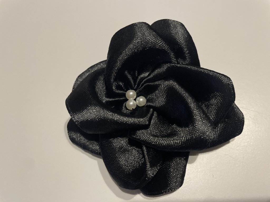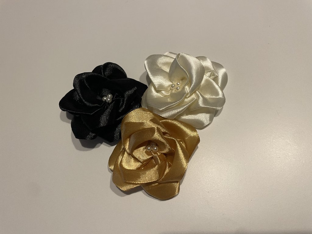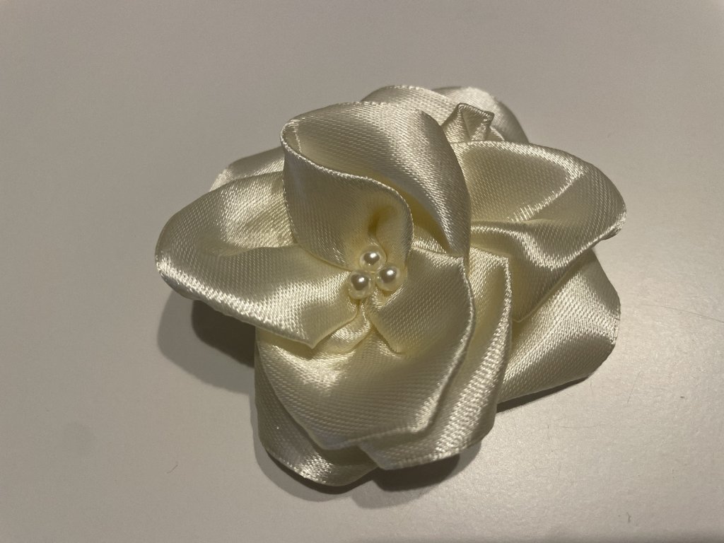 Saténová květina z kvalitní stuhy (50% bavlna a 50% polyester).